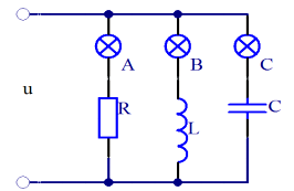 如图所示交流电路中,电压U不变,当电源频率降低,则各灯泡亮度变化是( )。