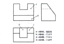 判断组合体上A、B、C、D四个表面的上、下、前、后、左、右的相对位置关系,并选择正确答案( )。